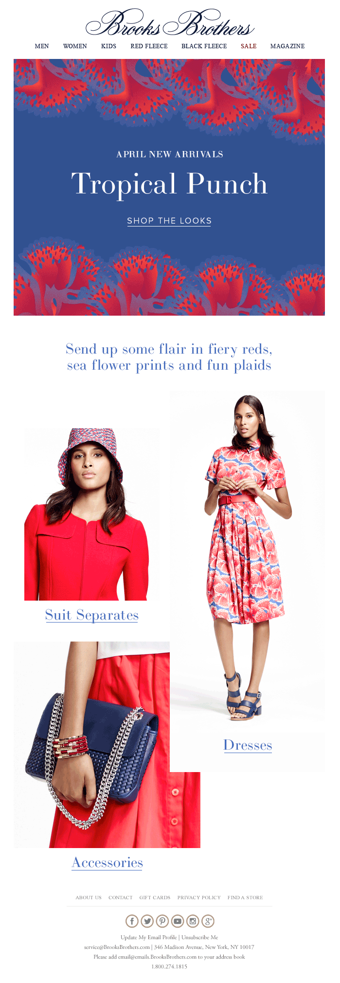 I established a distinct design aesthetic for the women’s creative direction, introducing a refined set of fonts, colors, and visuals that seamlessly aligned with the larger Brooks Brothers brand. Additionally, I art-directed the still photoshoot for accessories, ensuring a cohesive visual identity. Collaborating with the fashion design team, I extracted graphics from prints to enhance site and email assets, incorporating animations for a whimsical touch.